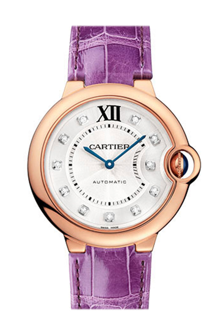 Cartier Ballon Bleu 36MM Silver Diamond Dial 18kt Pink Gold Ladies Watch WJBB0010