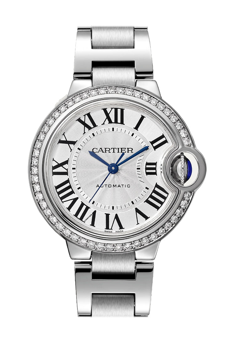 Cartier Ballon Bleu De Cartier 36mm Diamond Bezel Silver Dial W4BB0024