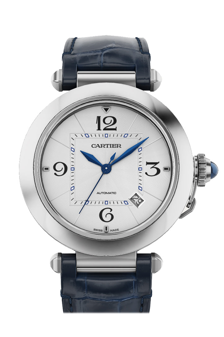 Cartier Steel Pasha Silver Dial Blue Croc WSPA0010