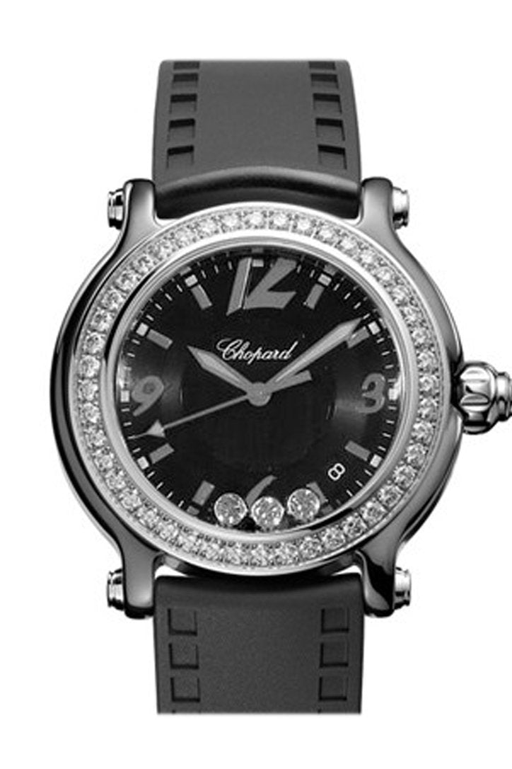 Chopard Happy Sport Black Dial Ceramic Diamond Ladies Watch 288507-9003