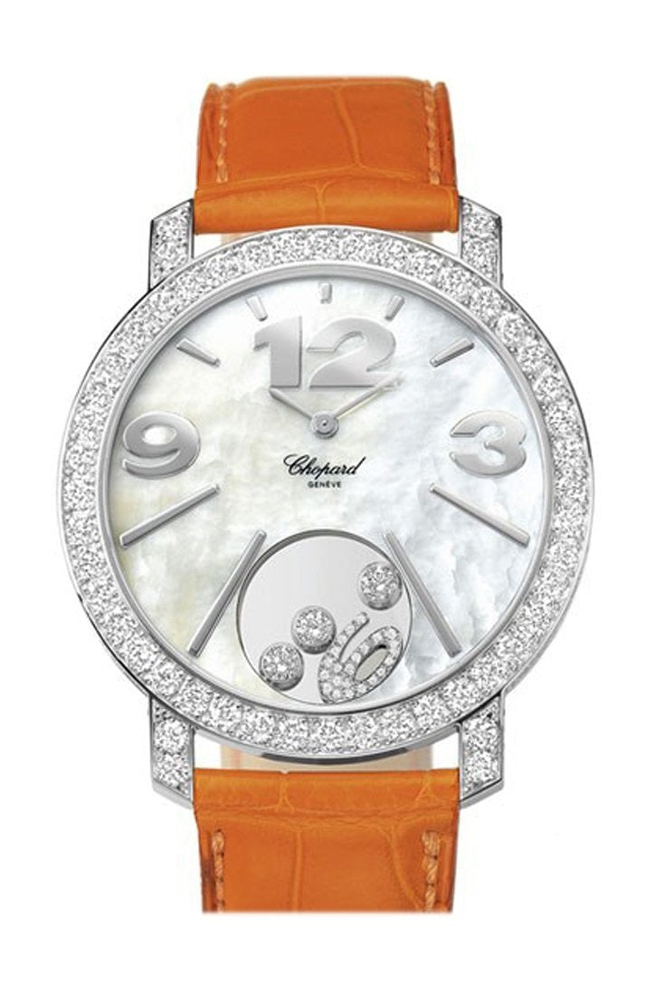 Chopard Happy Diamonds Mother of Pearl Dial 18kt White Gold Diamond Leather Ladies Watch 207450-1005