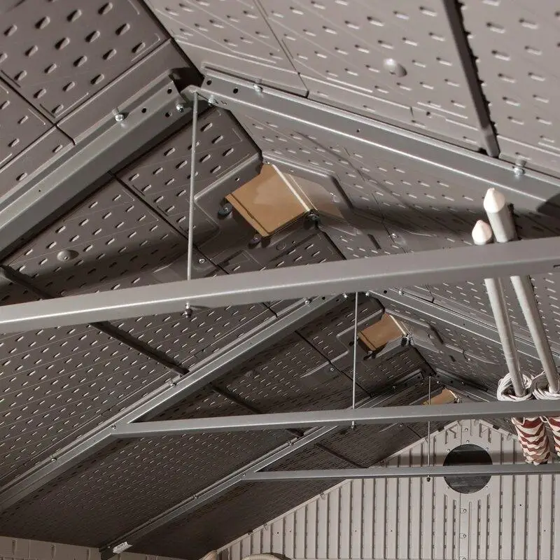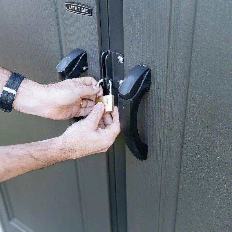 Lifetime's outdoor sheds combine quality materials with innovative designs to provide convenient storage solutions that maximize storage potential. Combining excellent value with the ability to withstand Mother Nature's daily abuse. Double-walled steel construction and steel roof trusses make the shed structurally strong so it won't buckle in storms and won't dent during everyday use.