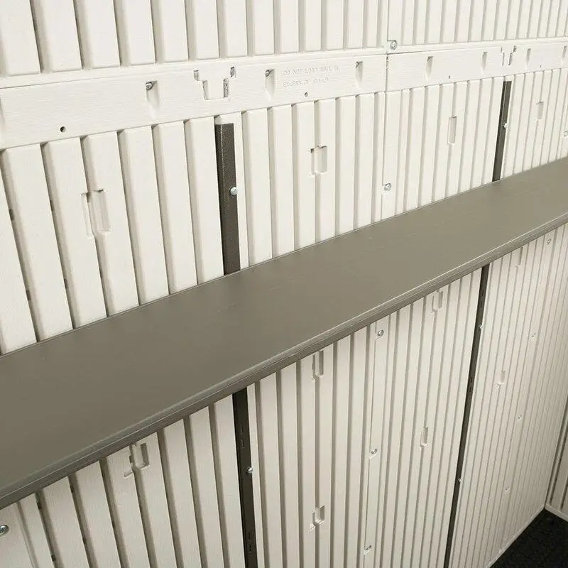 This side-entry plastic storage shed provides the perfect storage space for all your tools. Tool sheds are designed for functionality, helping you organize your tools and keep them safe. It proves to be a great addition to any home. Made from steel, HDPE polyethylene plastic, this side-entry plastic storage shed will provide years of reliable use. A gable roof adds traditional style to a storage shed. Screened vents provide airflow and keep the shed pest-free. A storage shed is quick and easy to assemble.