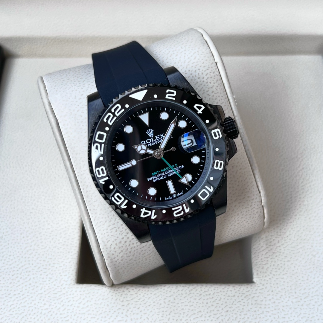 Rolex GMT-Master II Black Dial Multicolor Coke Ring leather Strap Men's Watch 126718GRNR