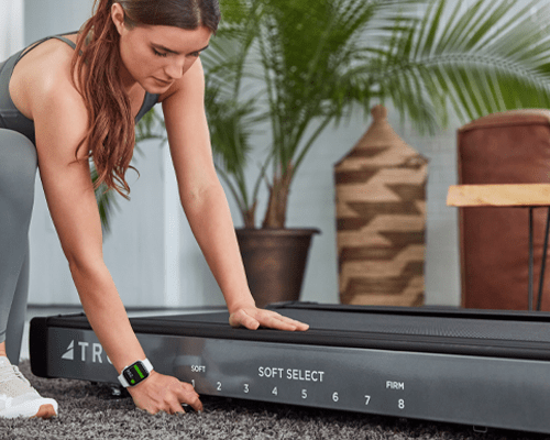 TRUE's Soft Select® adjustable deck cushioning has varying levels of soft to firm to fit every user's needs. With one simple adjustment. users can change their running surface to feel as though they're on a track or pavement.