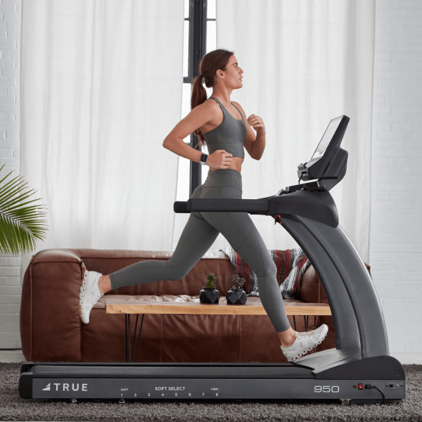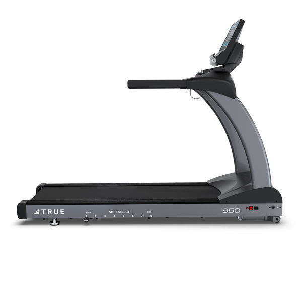 All of TRUE Fitness's Treadmills are constructed with commercial-grade materials and the finest components. so each piece of equipment feels and functions like a commercial machine. Available with comprehensive and lifetime warranties. your TRUE treadmill will stand the test of time. Designed with your safety in mind. the 950 Treadmill has TRUE's patented safety clip which is easily accessible at any given moment. as the extended handrails with moisture-resistant grips provide stability when needed.