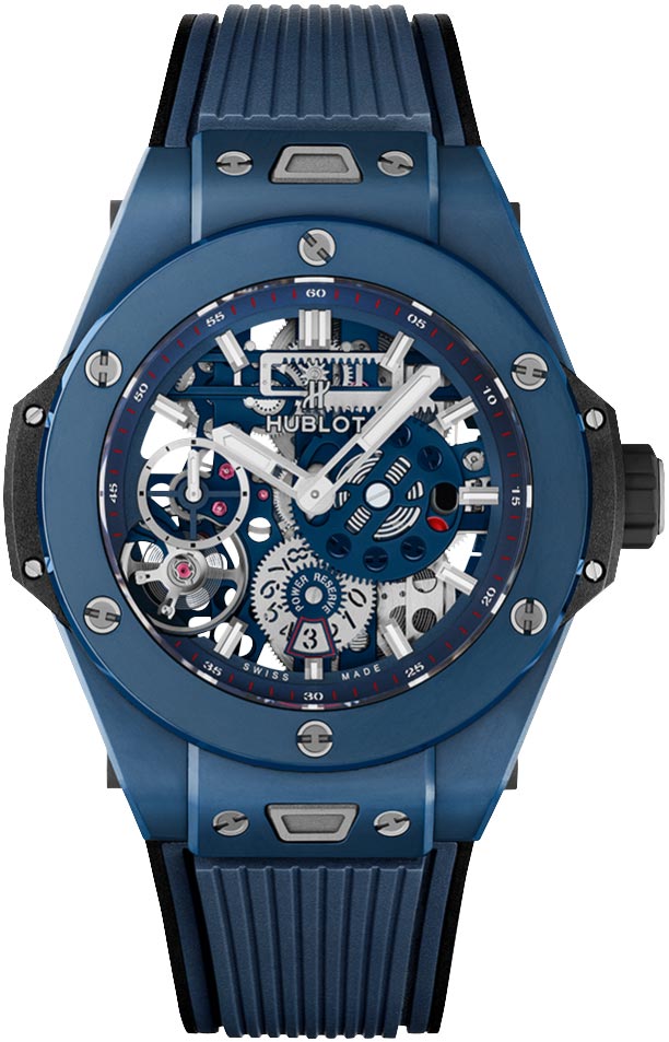 Hublot Big Bang MECA-10 45mm in Ceramic Mat Blue Skeleton Dial Black Blue Lined Structured Straps 414.EX.5123.RX