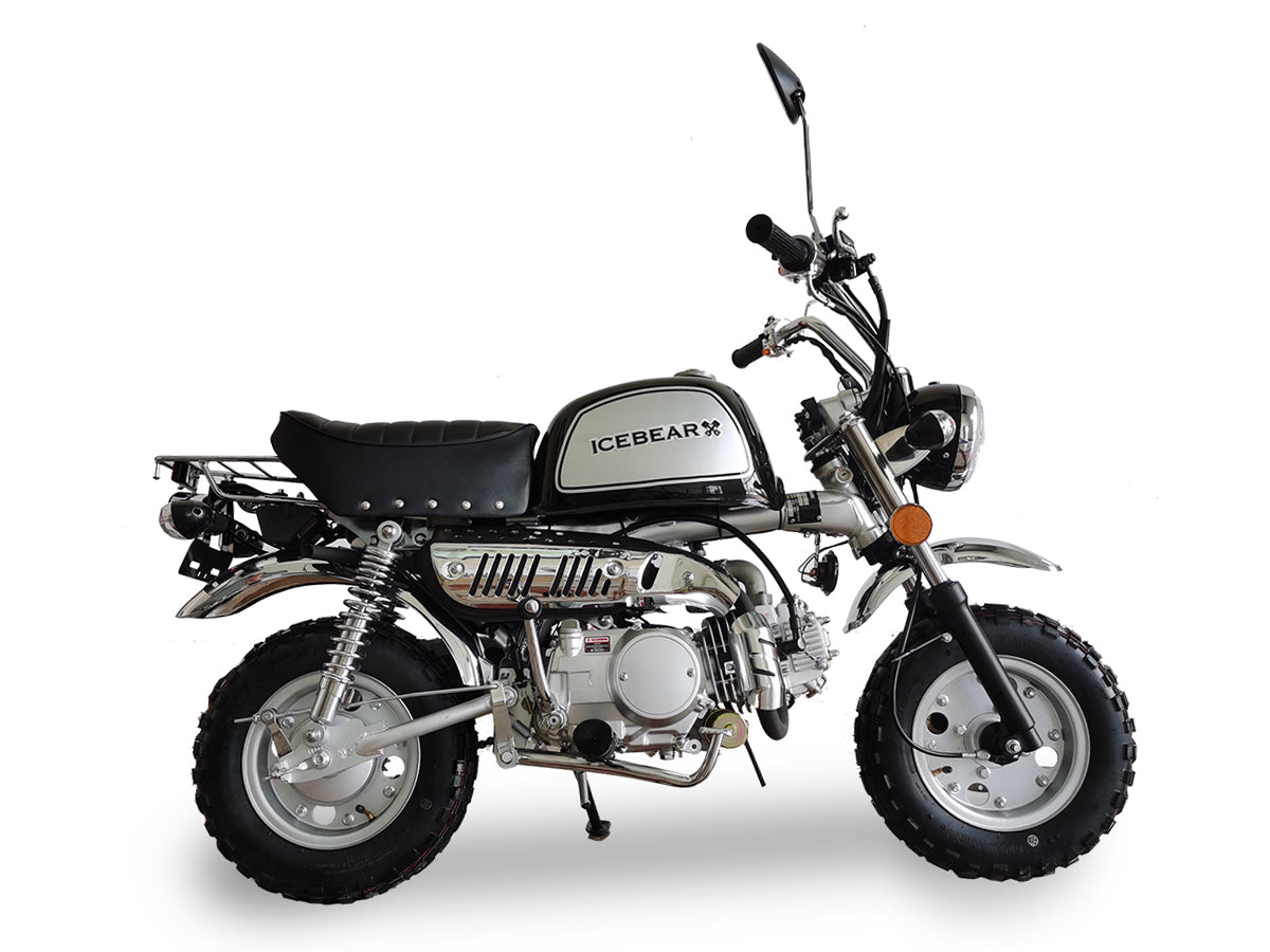 Back by popular demand for the first time in 10 years. Ice Bear's wildly popular Monkey Trail Bike is now available. A tribute to the 1970's legendary Monkey bike.  This bike features a 125cc Lifan Motor. front and rear brakes. and a large fuel tank.