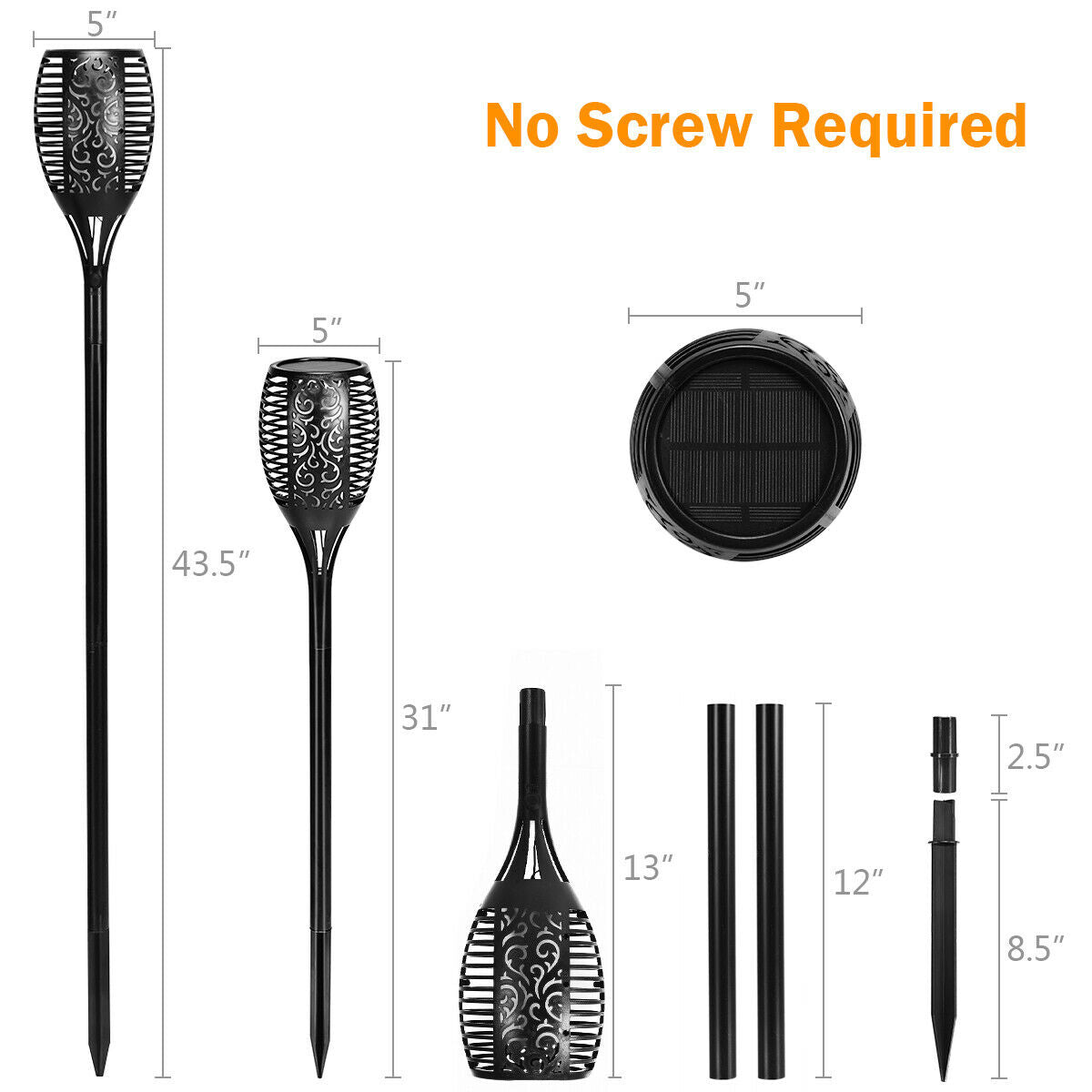 - A set of 4 solar flame lamps realistic flame and torch body design