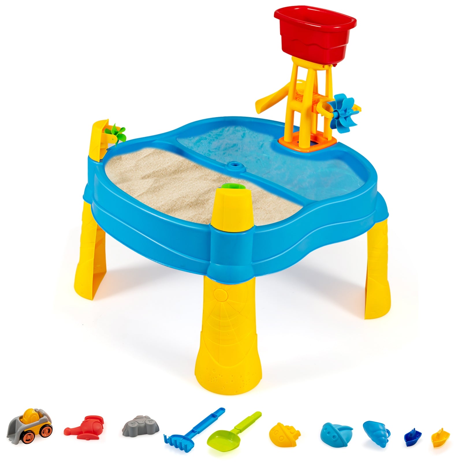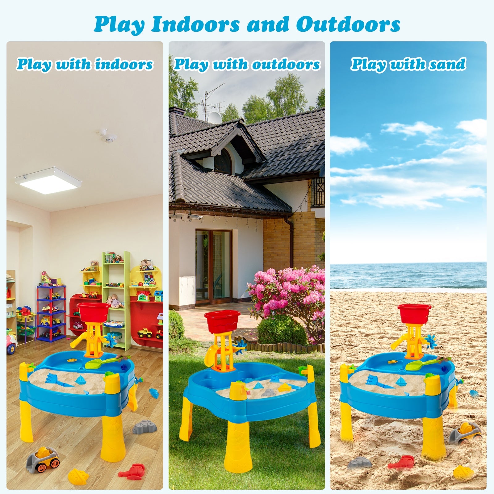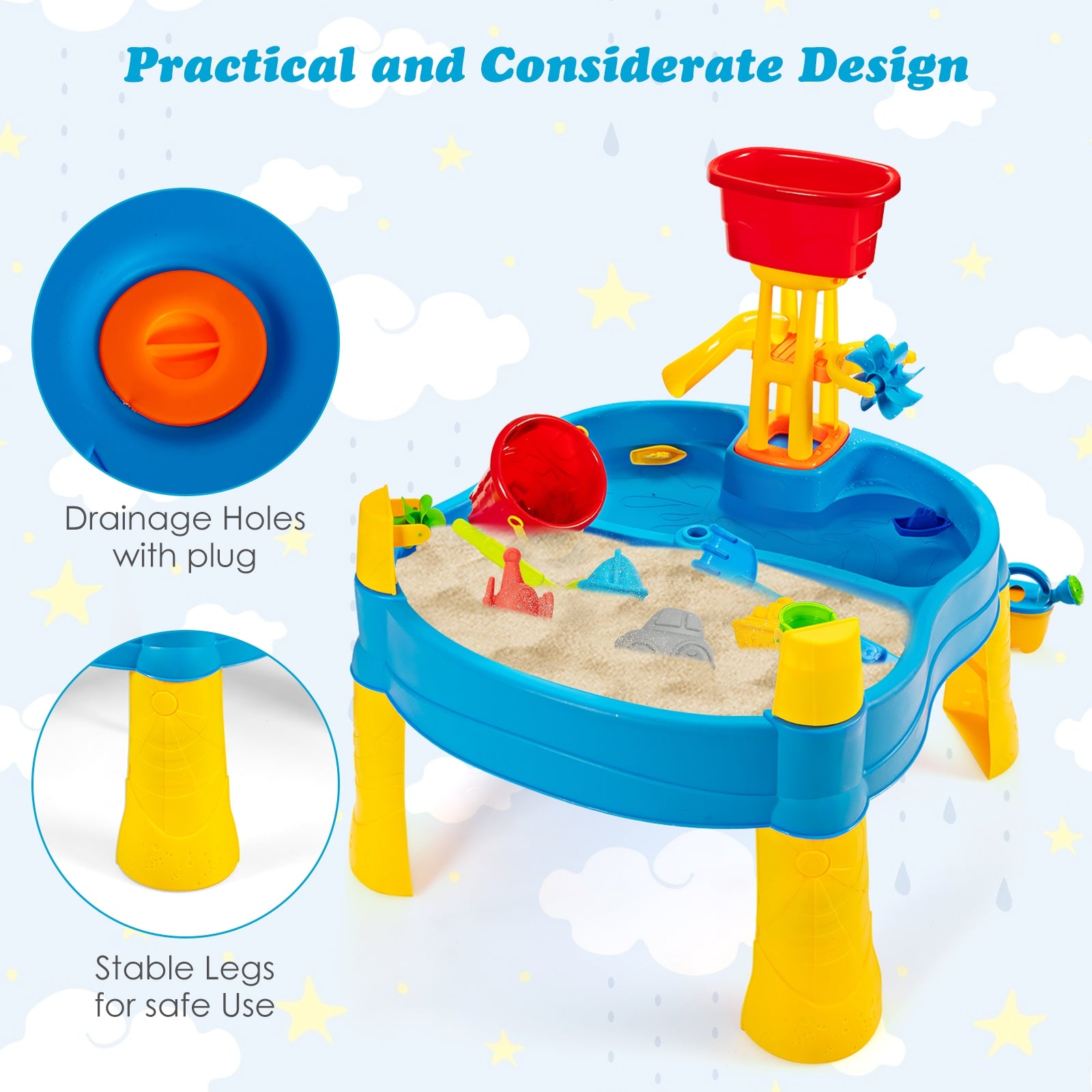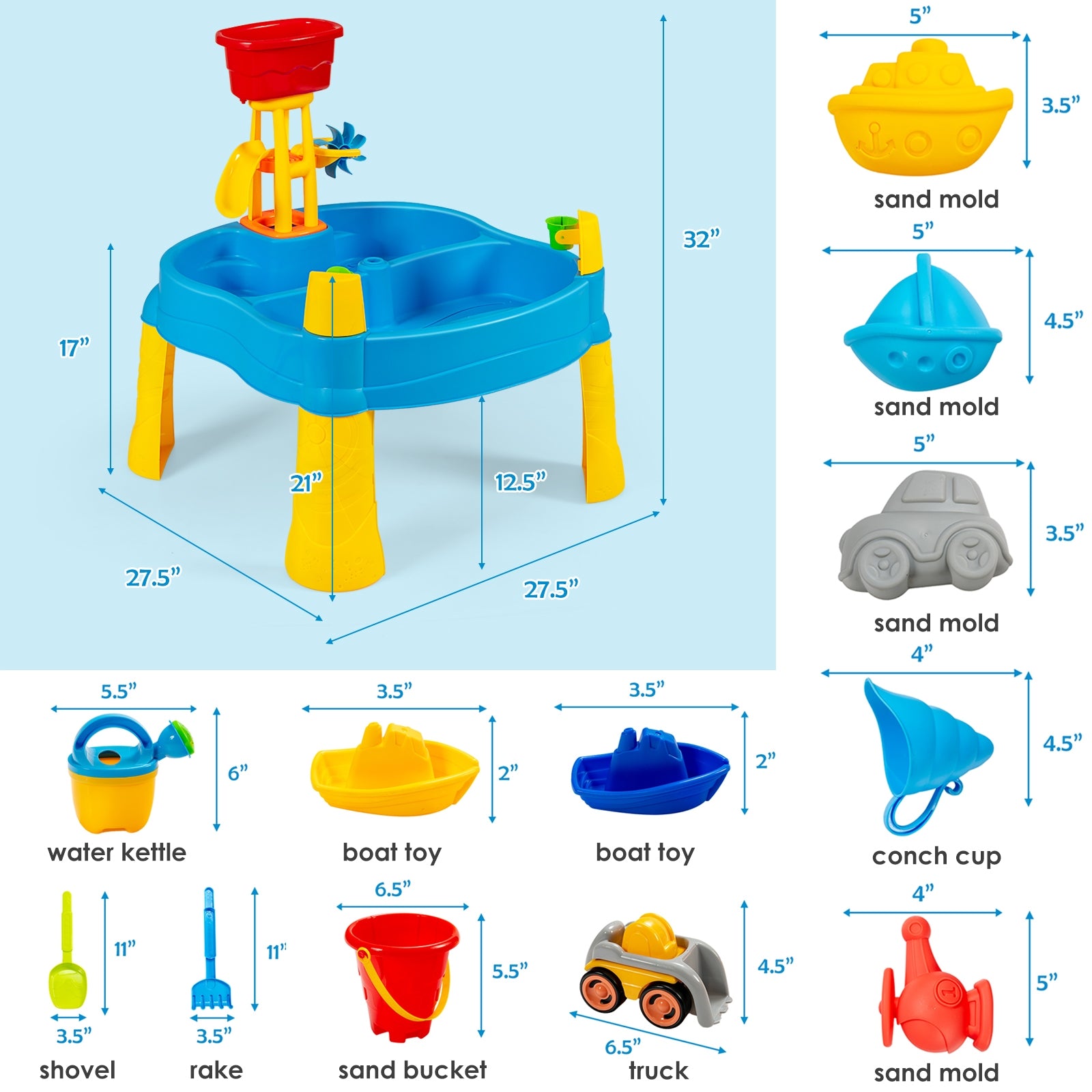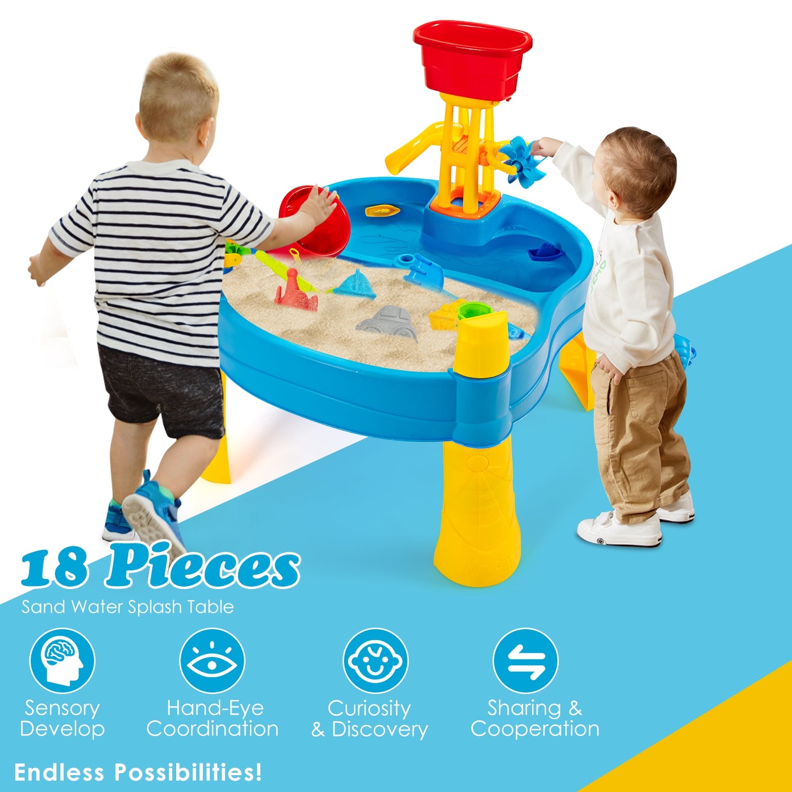 • Kids Sand and Water Activity Table Sandbox with 18 Pieces Accessories
