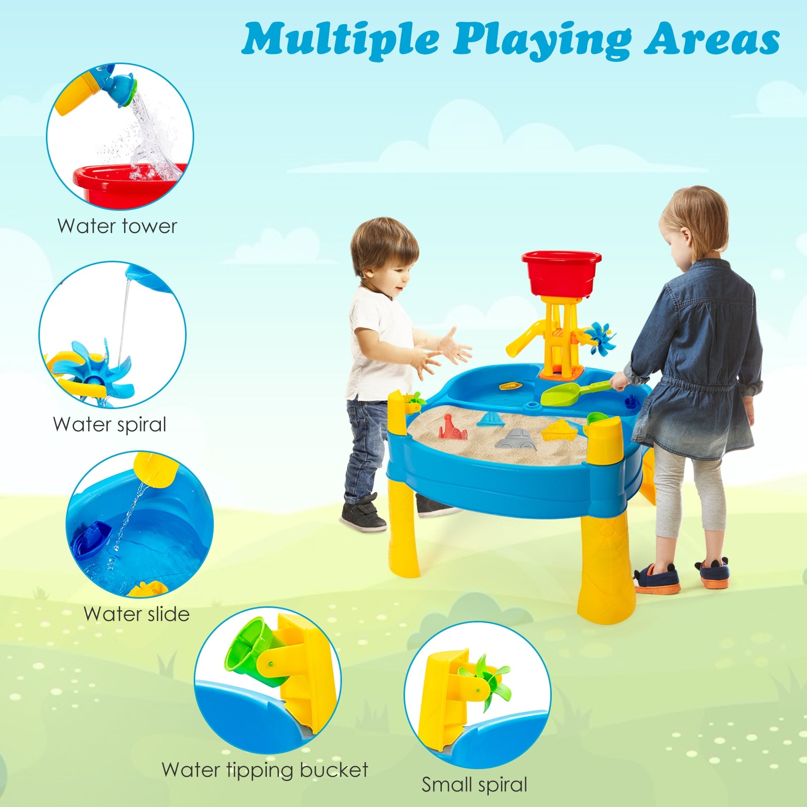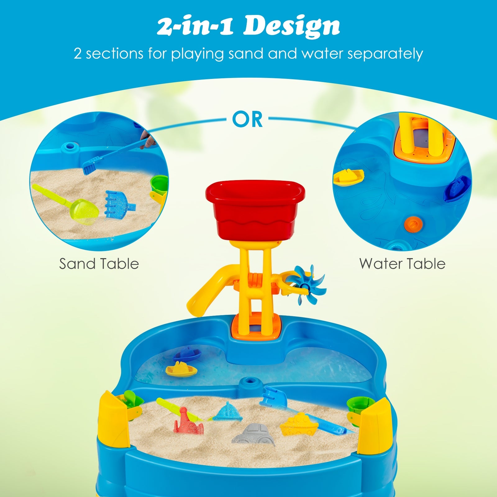 Kids Sand and Water Activity Table Sandbox with 18 Pieces Accessories
