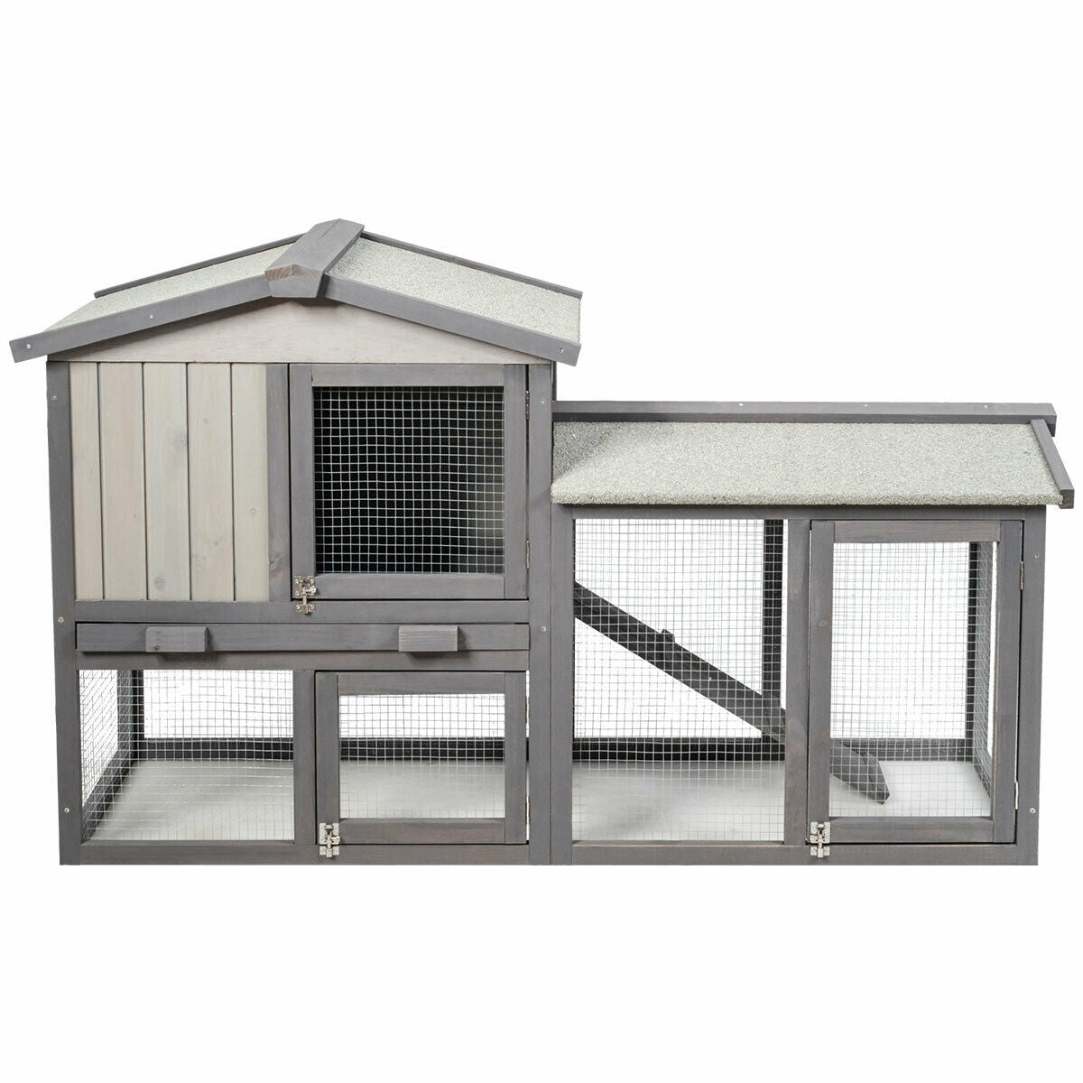 58" Weatherproof Wooden Rabbit Hutch-Gray