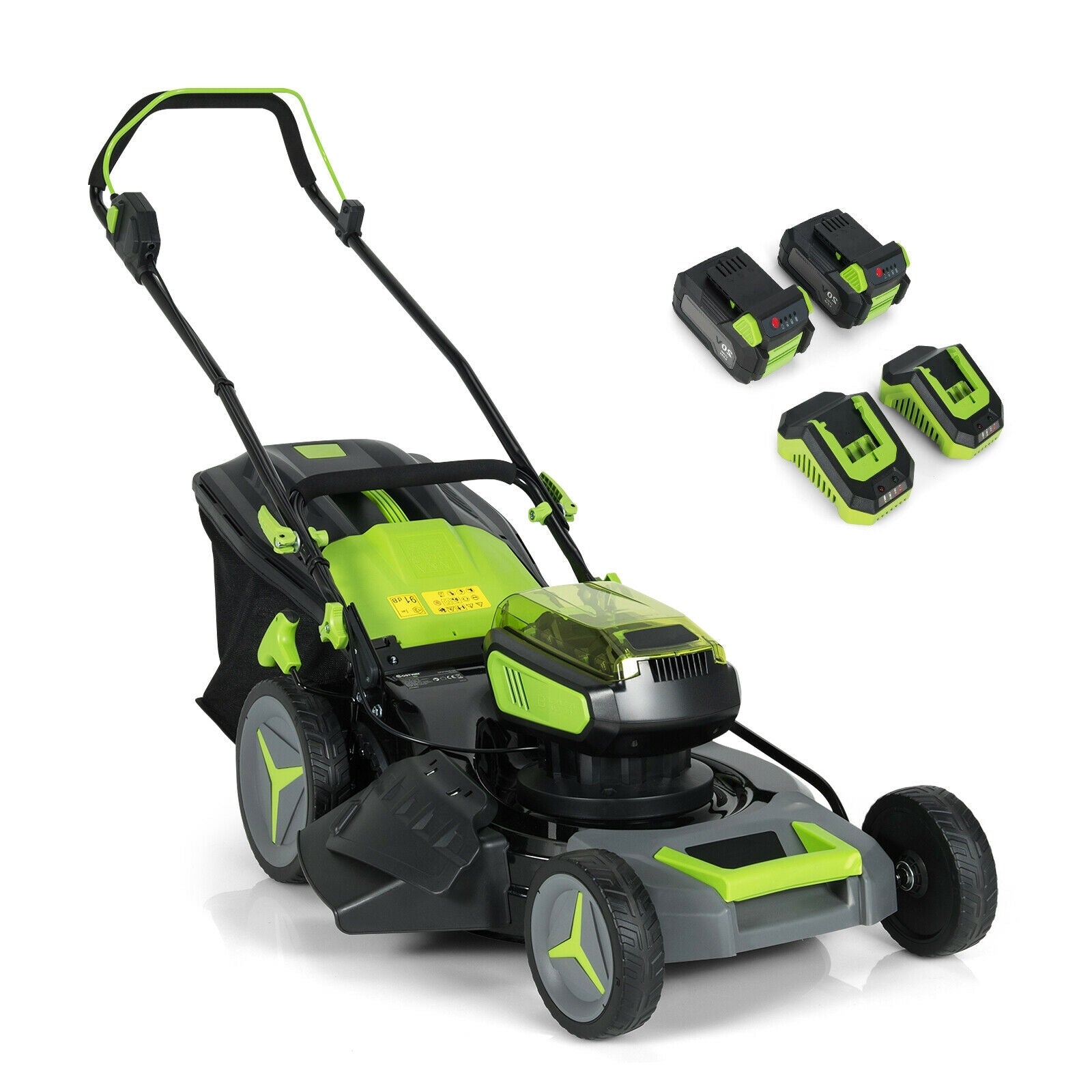 40V 18 Inch Brushless Cordless Push Lawn Mower 4.0Ah Batteries and 2 Chargers-Green