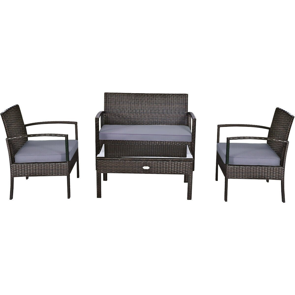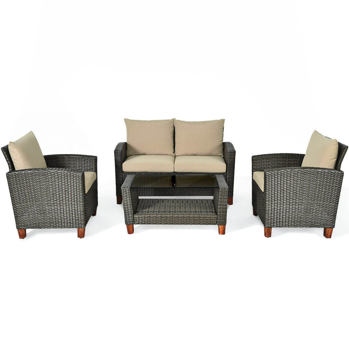 4 Pieces Patio Rattan Furniture Set with Cushions