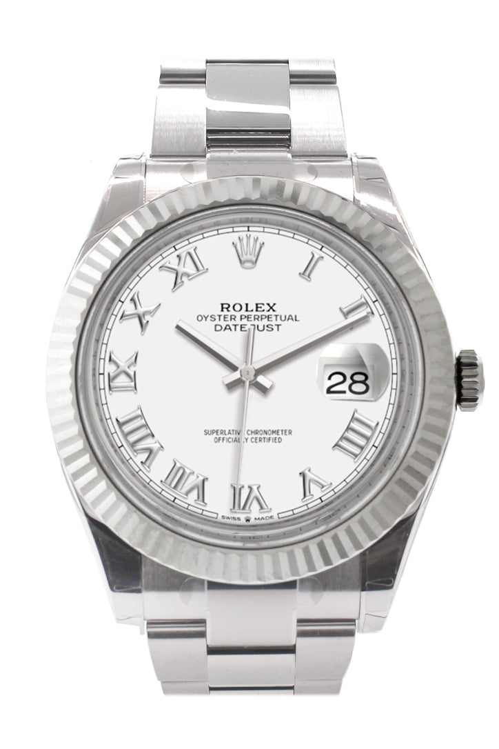 Super Clone Datejust 41 White Roman Dial White Gold Fluted Bezel Oyster Mens Watch 126334