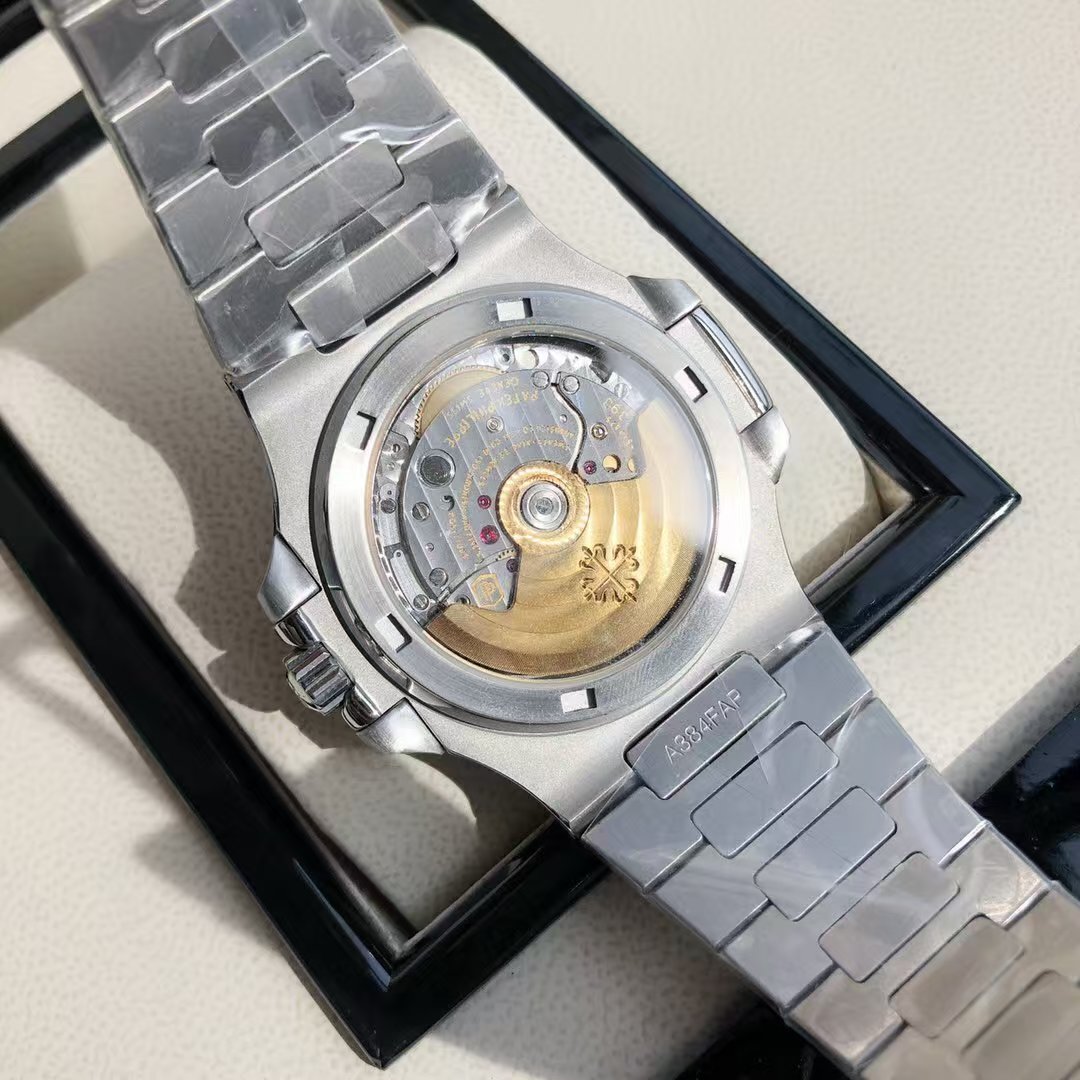 43mm x 38mm stainless steel case, sapphire crystal back, screw-down crown, black-blue dial with gold applied hour markers with luminescent coating, self-winding caliber 324 S C movement with date and sweep second hand, approximately 45 hour of power reserve, stainless steel bracelet. Water resistant to 120 meters. 5711-1A-010