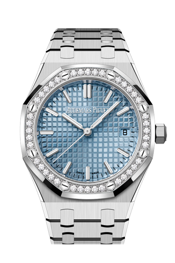 Audemars Piguet Royal Oak 34 Stainless Steel Light Blue Dial Diamond Bezel Watch 77451ST.ZZ.1361ST.03