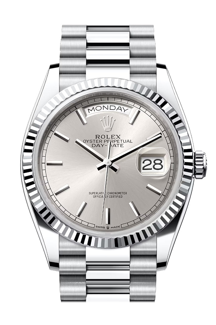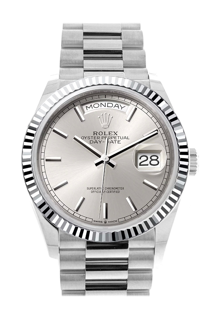 Day-Date 36 Silver Dial Fluted Bezel Platinum President Watch 128236