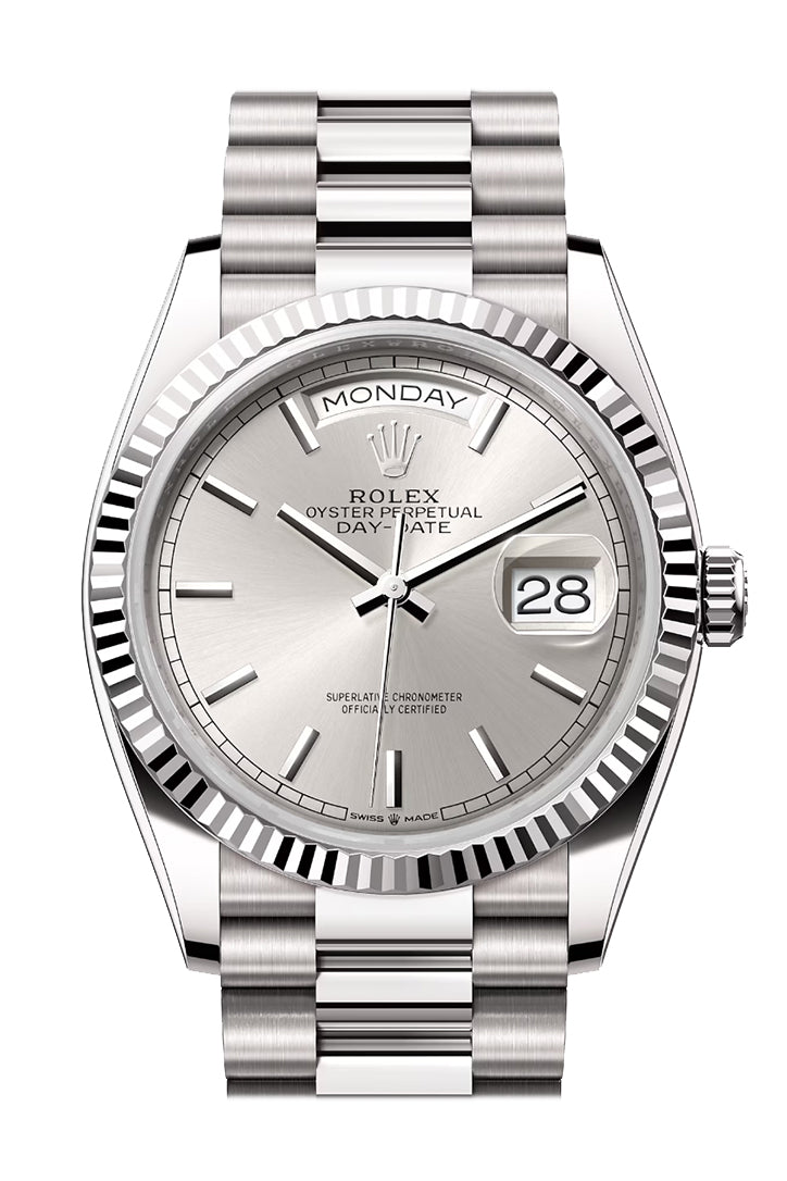 Day-Date 36 Silver Dial Fluted Bezel White gold President Watch 128239