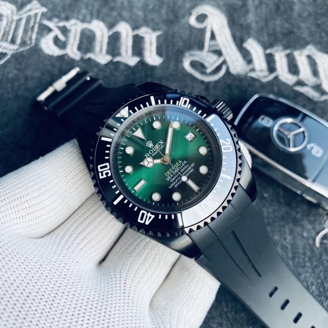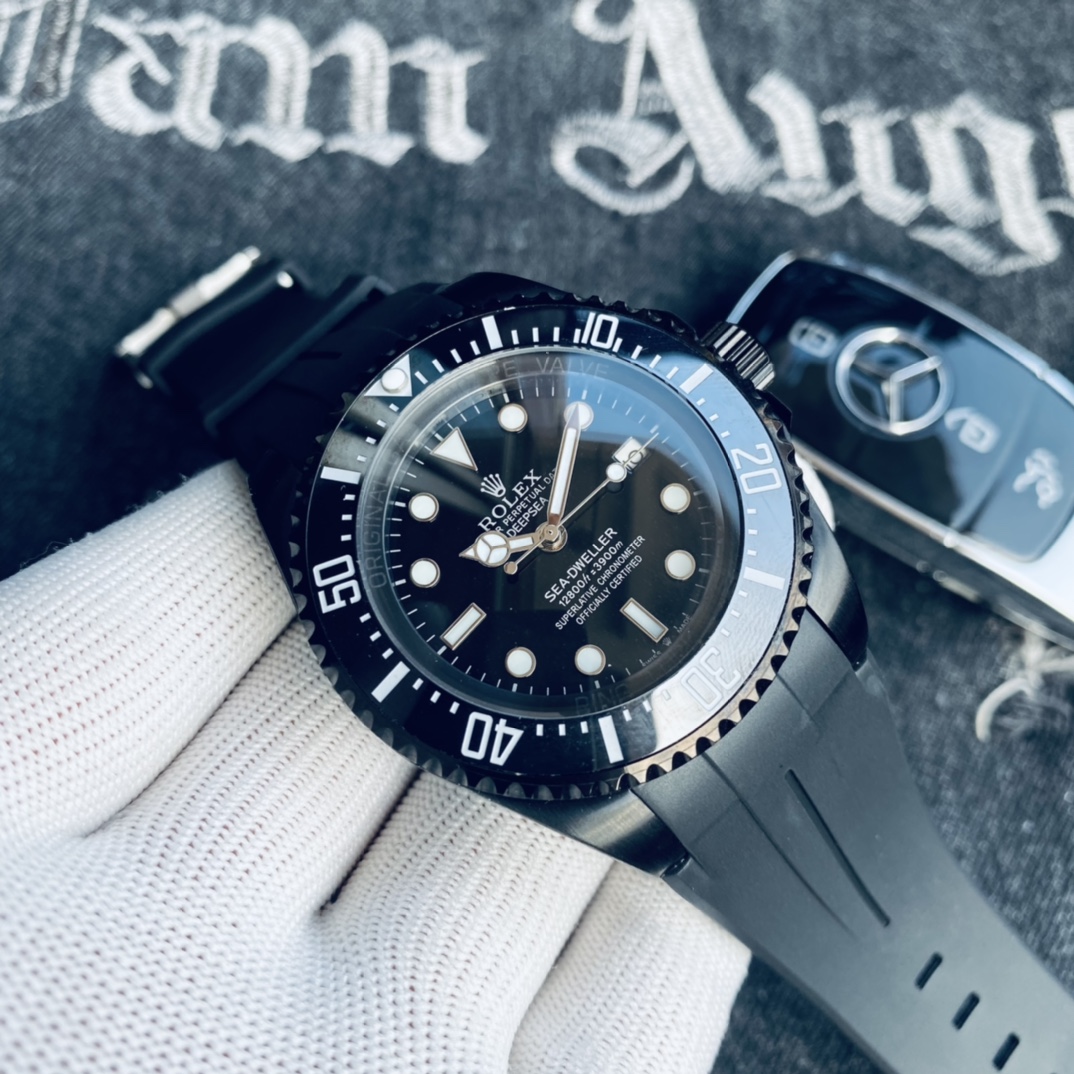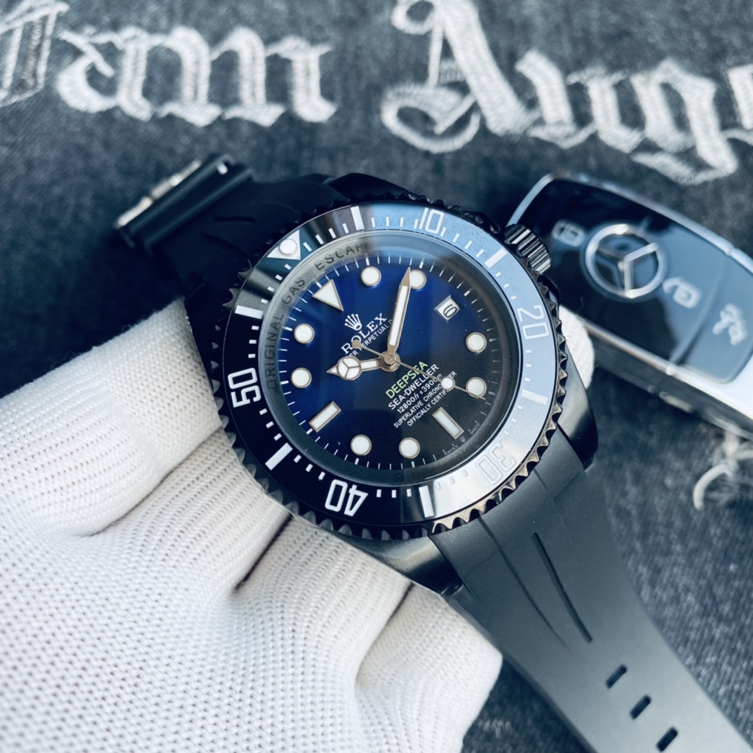 • Super Clone Rolex Black Deepsea Sea-Dweller D-Blue 44 Dial Automatic Men's Black tape Watch 126660