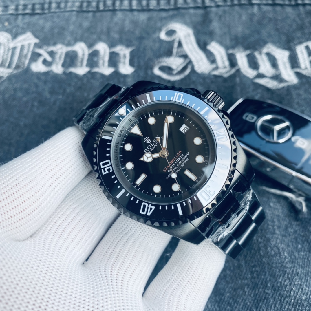 • Super Clone Rolex Black Deepsea Sea-Dweller D-Blue 44 Dial Automatic Men's Stainless Steel Oyster Watch 126660