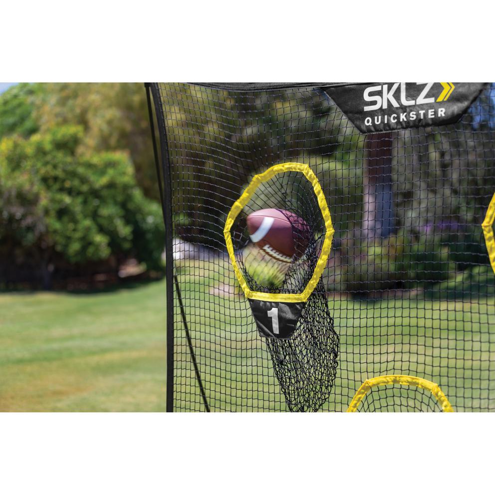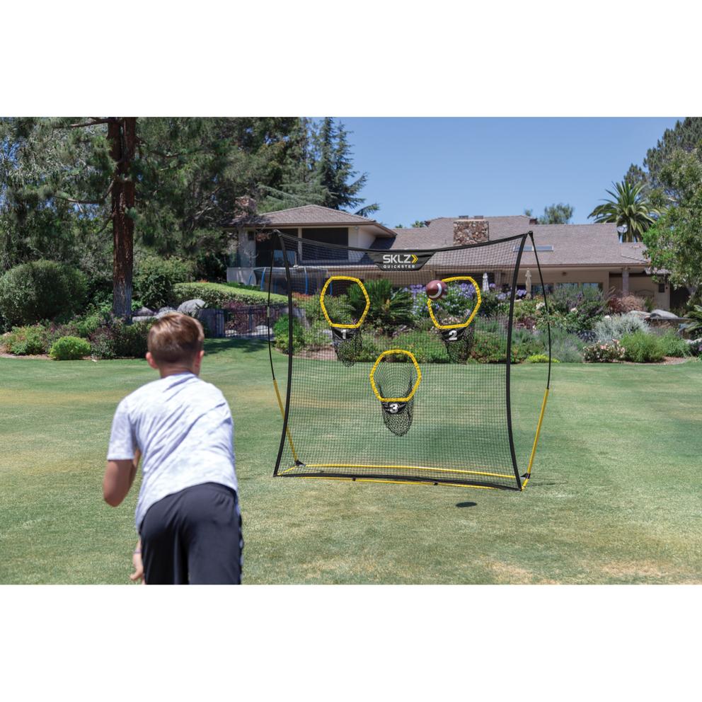 New frame design with ultra-durable triple-gusset reinforced corner joints to withstand high-intensity training. The Quickster QB Trainer features Tension-Tite frame technology, quick connect tubing and new Quickclip attachments to set up and break down easily.