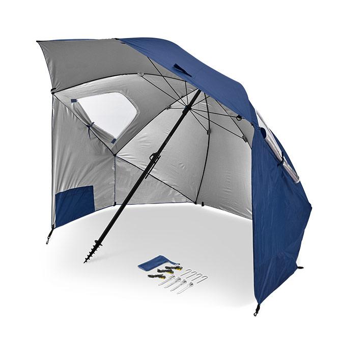 With every feature under the sun and rain, the extra-large 9’ Sport-Brella Premiere XL features UPF 50+ sun and weather protection, a heavy-duty 1.25’ center pole, oversized auger bit with integrated twist handle and patented side panels for increased privacy. Use it at sporting events, concerts, the beach, camping, and even in the backyard. Its zippered windows open to allow in a cooling breeze while helping prevent the umbrella from blowing away. At the same time, the patented side panels include external stow-away clips that allow the flaps to be stored when the umbrella’s in the upright position to increase your viewing area. Two reinforced internal pockets are perfect for storing your phone, snacks, and other gear. And when you’re ready to pack up, the Sport-Brella Premiere XL stores easily in a reinforced carry bag that includes stakes for securing it to the ground.