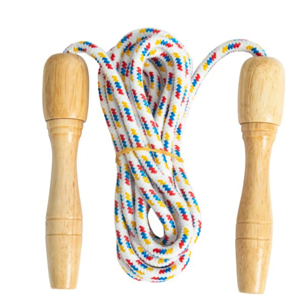 This 8-foot cotton rope features 6-inch Lacquer finished hardwood handles with ball bearings for smooth rope rotation, making it a joy to use.