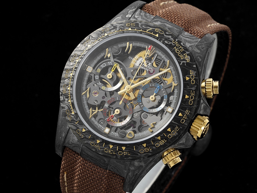• Super Clone Diw Carbon Fiber Cosmograph Daytona mechanical Dial Oysterflex Leather strap 116515LN