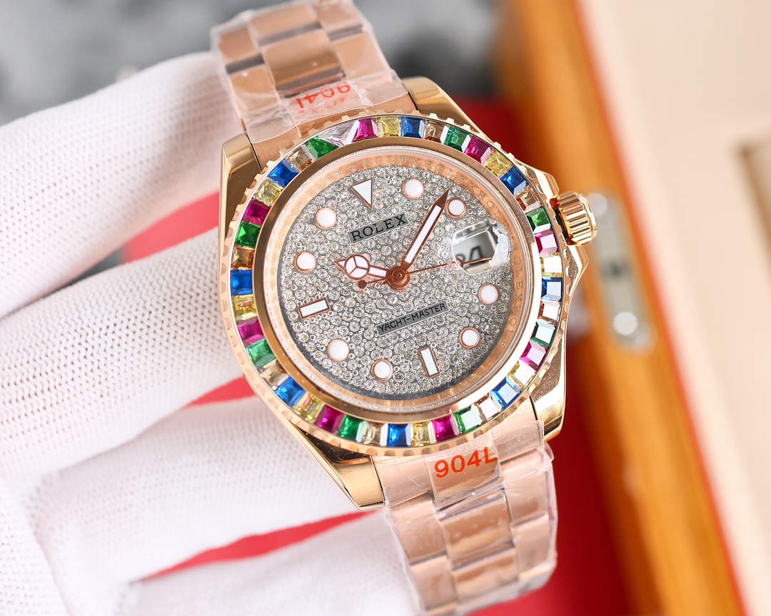 18kt everose gold case with a oysterflex rubber strap. Bi-directional rotating time-lapse 18kt everose gold bezel. Diamond set dial with index hour markers. Minute markers around the outer rim. Dial Type: Analog. Luminescent hands and markers. Date display at the 3 o'clock position. Rolex Calibre 2236 automatic movement with a 55-hour power reserve. Scratch resistant sapphire crystal. Screw down crown. Solid case back. Round case shape. Case size: 37 mm. Fold over oysterlock clasp. Water resistant at 100 meters / 330 feet. Functions: date, hour, minute, second, chronometer. Luxury watch style. Watch label: Swiss Made. Rolex Yacht-Master Automatic Chronometer Unisex Watch