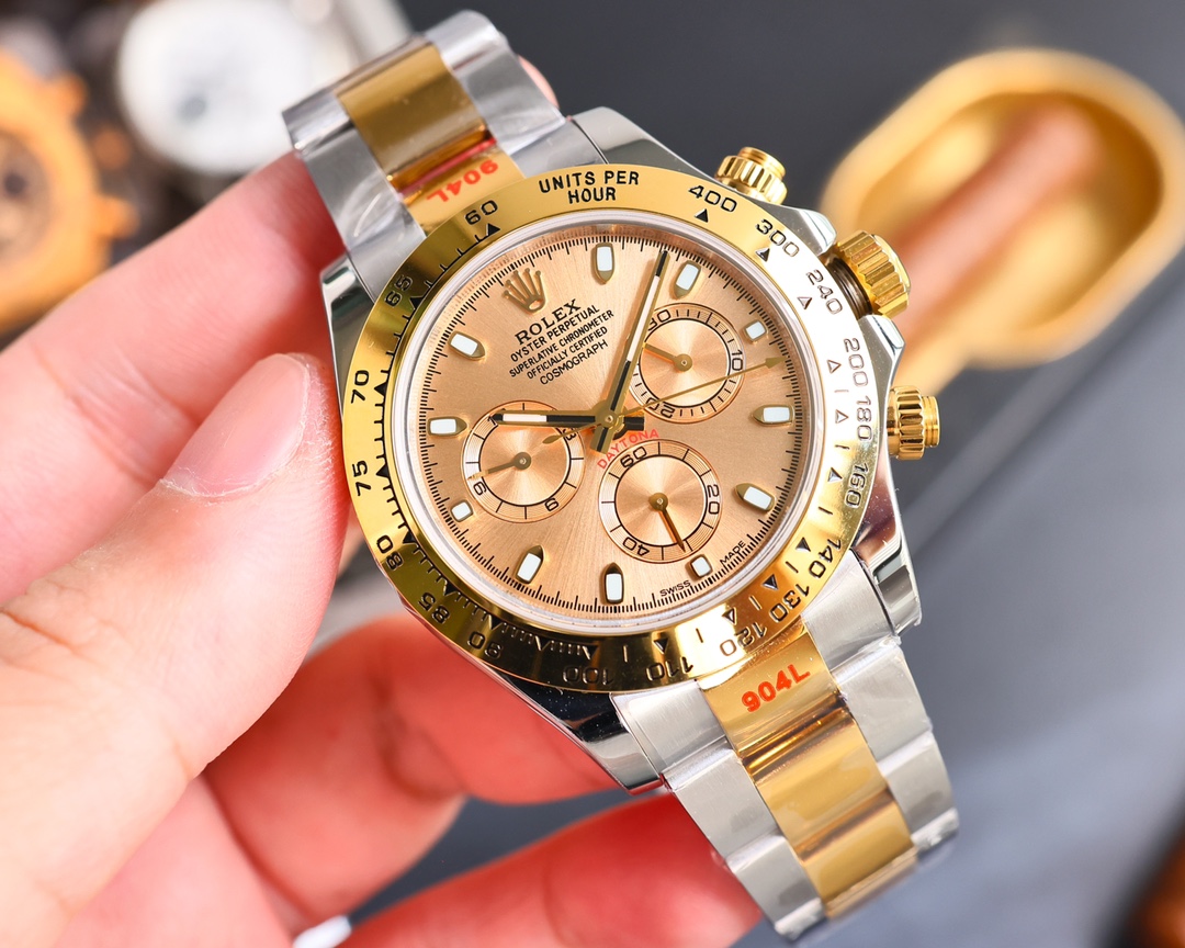 Super Clone Cosmograph Daytona Champagne Diamond Yellow Gold Oysterflex Strap Mens Watch 116518LN 116518