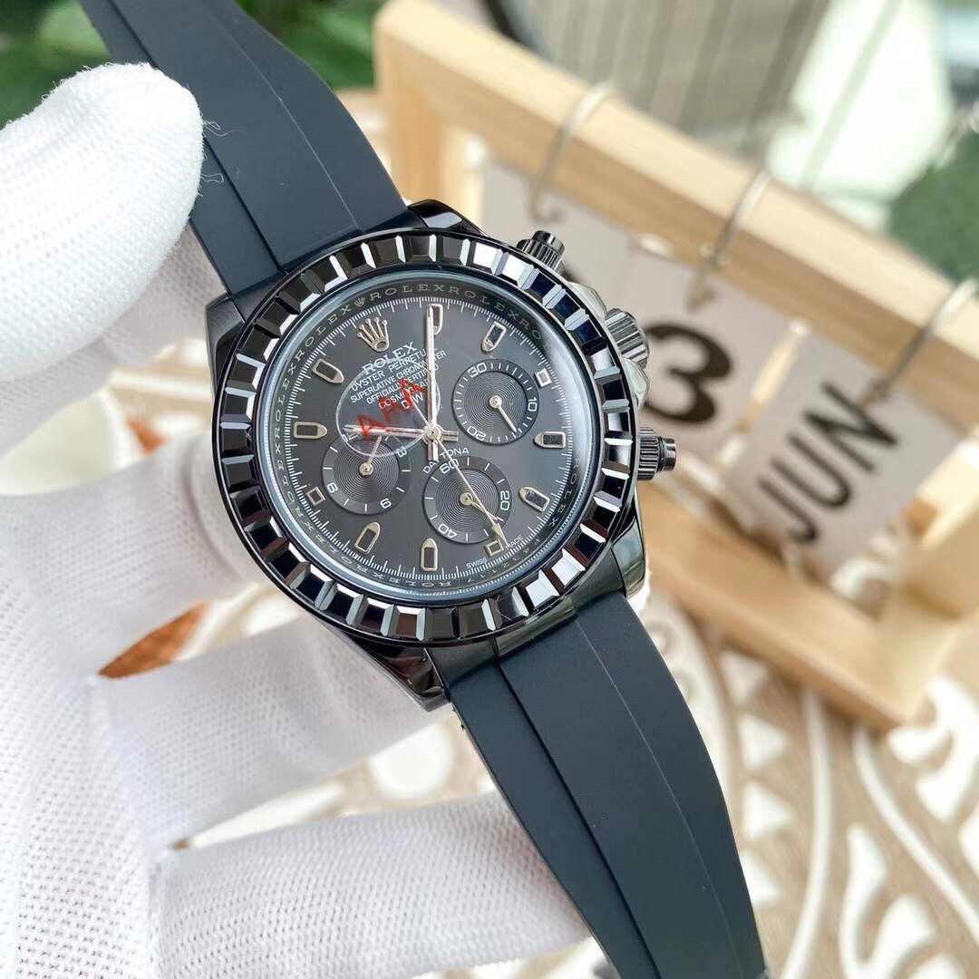 Super Clone Rolex Cosmograph Black Daytona 40 black Dial Stainless Steel Mens Watch Oysterflex Strap 116599-116598-116595