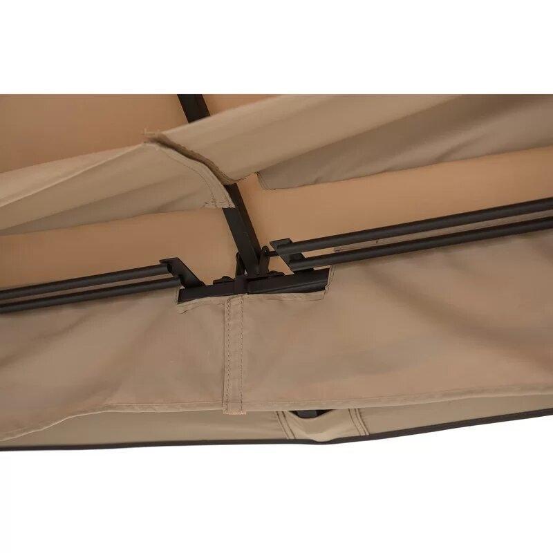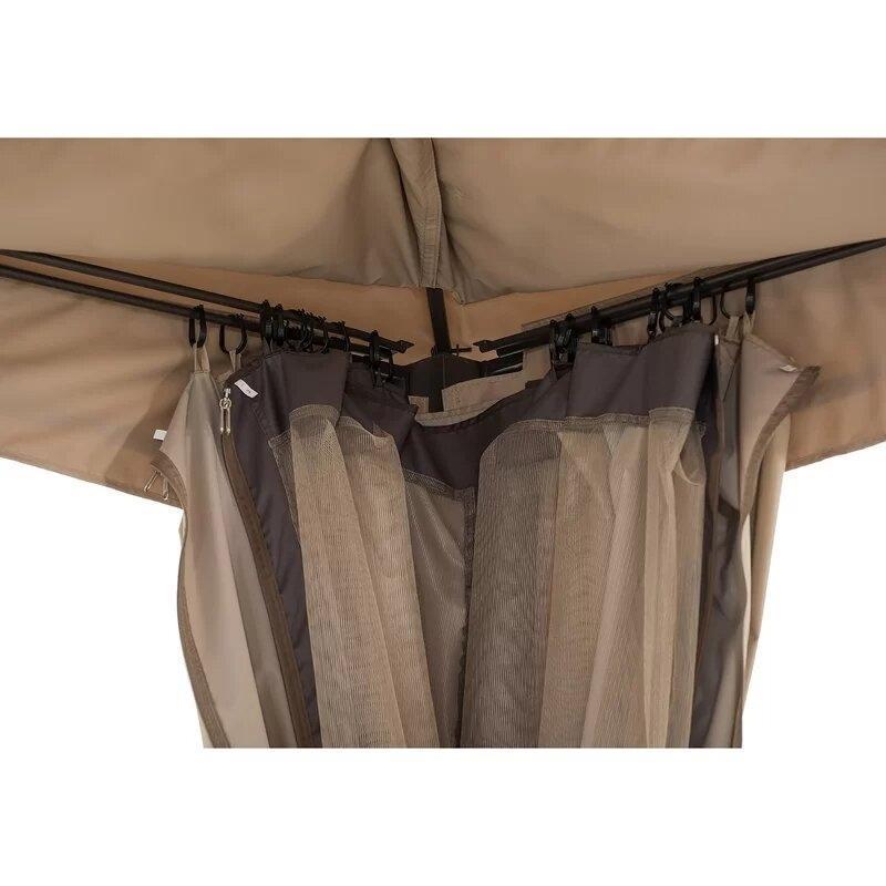Expand your living space by moving the indoors outside to create an end-of-the-day oasis thats the perfect spot for entertaining family and friends. This 12 ft. x 10 ft. gazebo by the worlds leading ready-to-assemble outdoor structure maker, Sunjoy, creates the perfect outdoor setting. Enjoy a covered spot outdoors under the rust-resistant powder-coated steel frame with a weather-resistant fabric canopy. Convenient battery powered LED lighting is incorporated into each frame post. In addition, enjoy your favorite music with Bluetooth enabled sound. Included privacy curtains may prevent prying eyes and the included mosquito netting will keep bugs away. Set the mood by suspending a chandelier from the incorporated ceiling hook for functional light and high design. With straight-forward, easy-to-follow assembly instructions youll be relaxing with your beverage of choice in your favorite new outdoor living space for years to come.