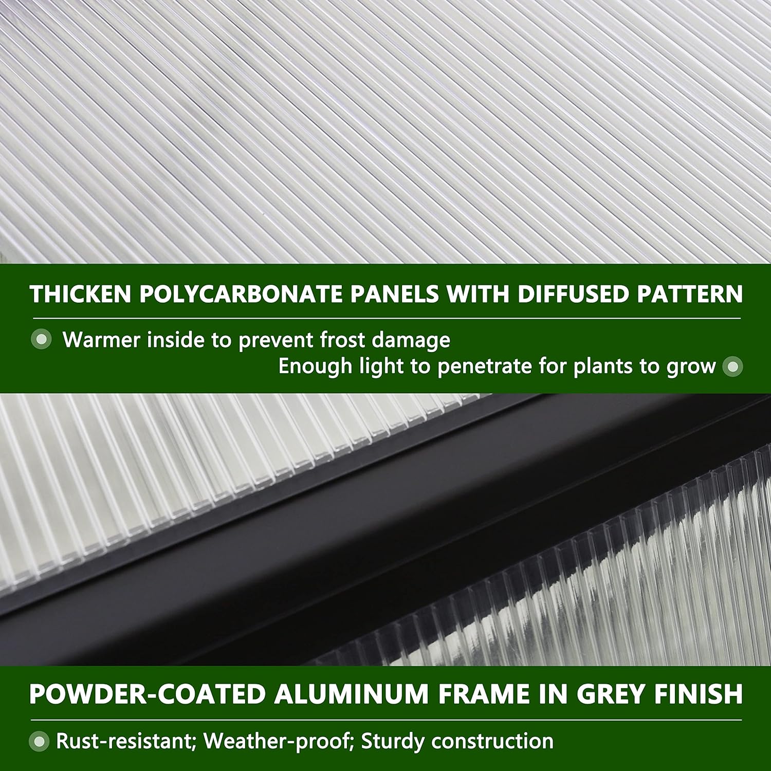 - UPGRADED GREENHOUSES FOR OUTDOORS - We upgrade the polycarbonate greenhouse panels and made them thicker and stronger (4mm twin-wall), which means that they can protect your favorite plants and herbs in the heavy-duty greenhouse for outdoors, and can make the inside of the green house warmer and friendly to plant growth.