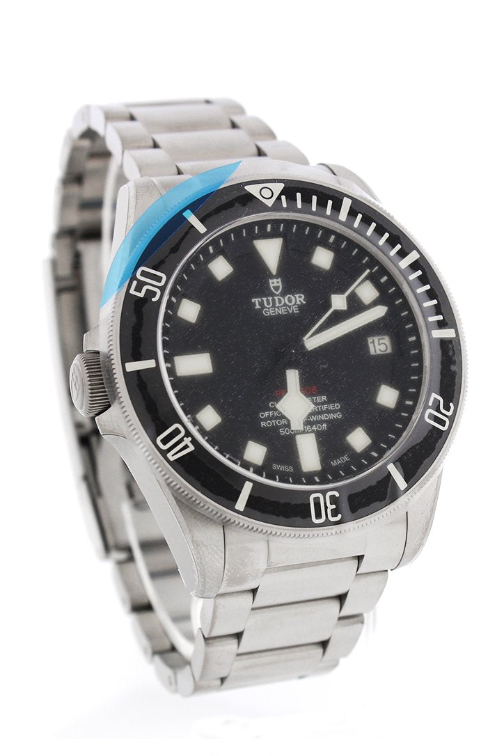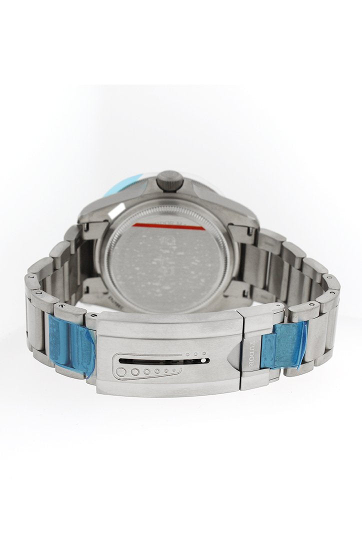 Titanium Case. 42mm Case Dimension. Black dial with beige hands and index hour markers. Minute markers around the outer rim on Dial. Titanium Bracelet.