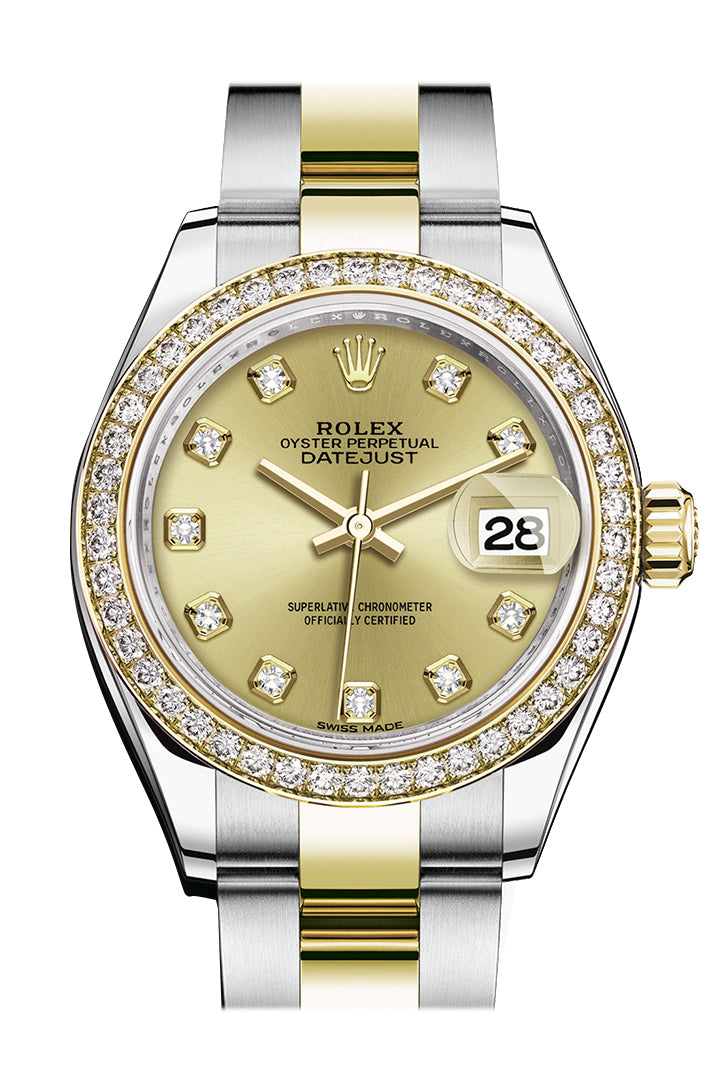Datejust 28 Champagne set with diamonds Dial Diamond Bezel Yellow Gold Ladies Watch 279383RBR 279383