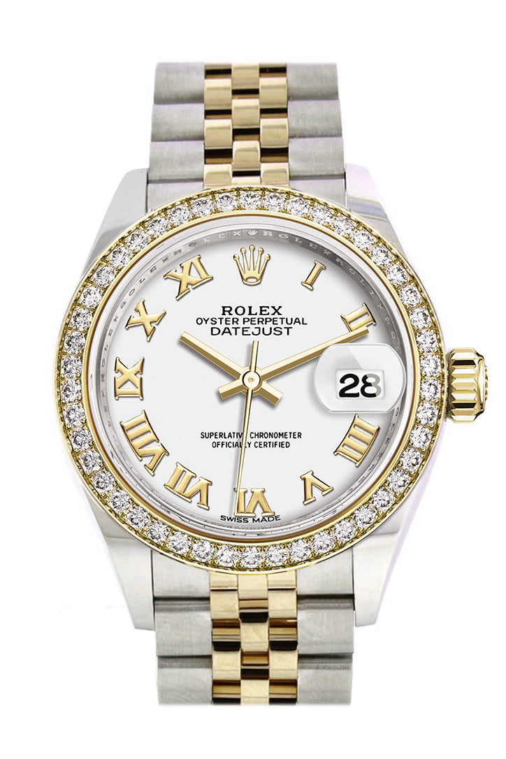 Datejust 28 White Roman Dial Diamond Bezel Yellow Gold Jubilee Ladies Watch 279383RBR 279383